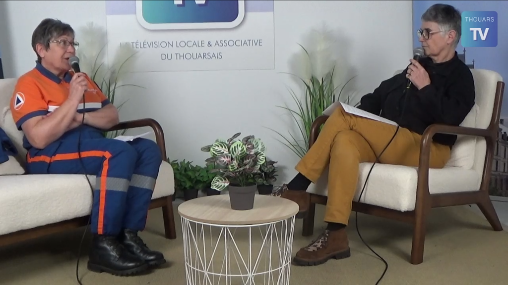 Dans l’émission « Des bénévoles au service de la sécurité des citoyens » diffusée par Thouars TV, Patricia Diguet, responsable de l’antenne de Thouars de la Protection Civile des Deux‑Sèvres, a pris la parole pour présenter l’action de notre association et expliquer en quoi consiste l’engagement bénévole au service de tous.